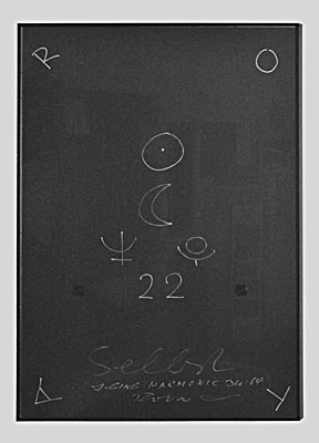 "Selbst", 1989, Silberstift auf schwarzem Fotokarton, zwei schwarze Spiral-Achtstern-Siegel, 100 x 70 cm, Privatsammlung